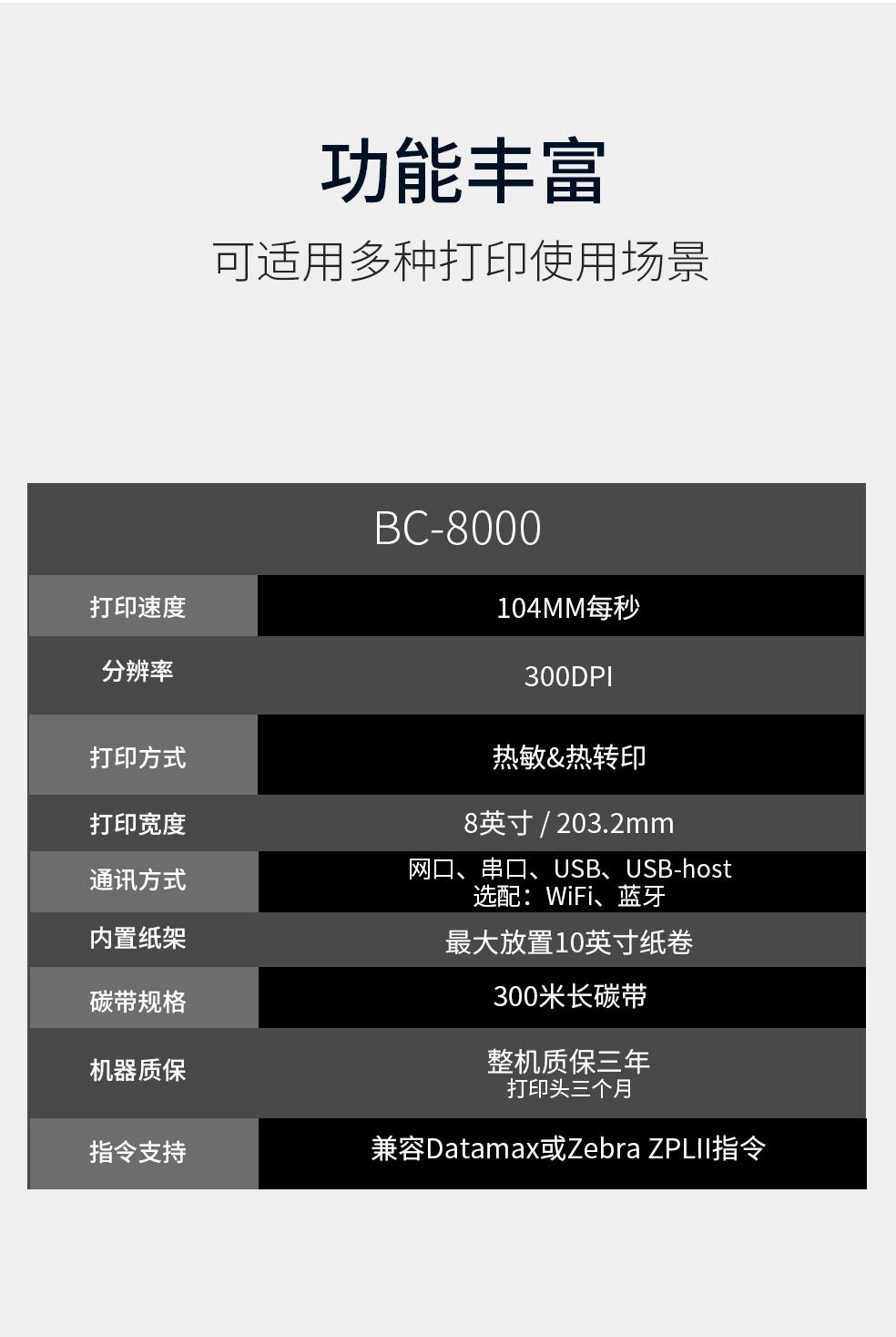 - 全金屬結構多功能接口條碼打印機的優點